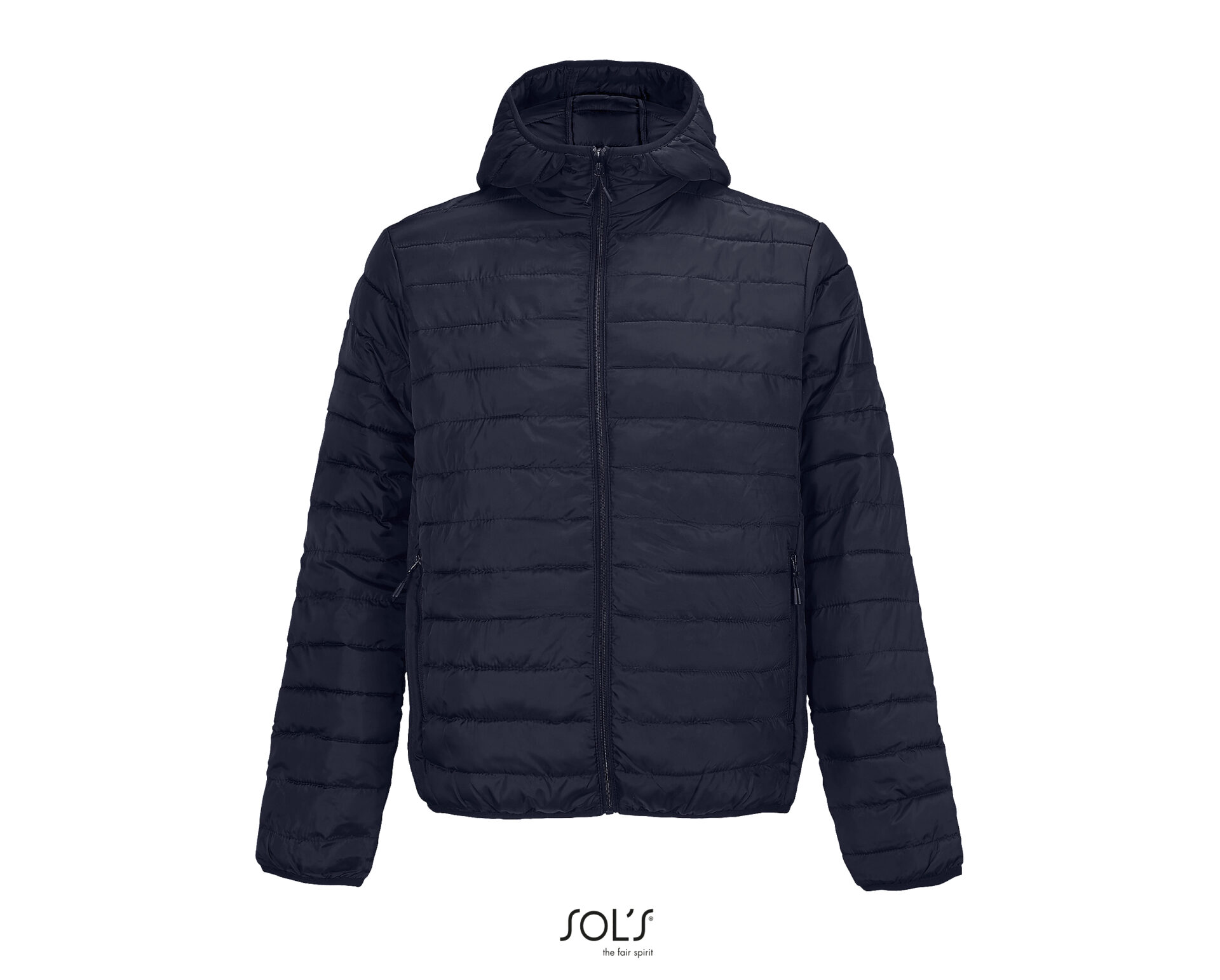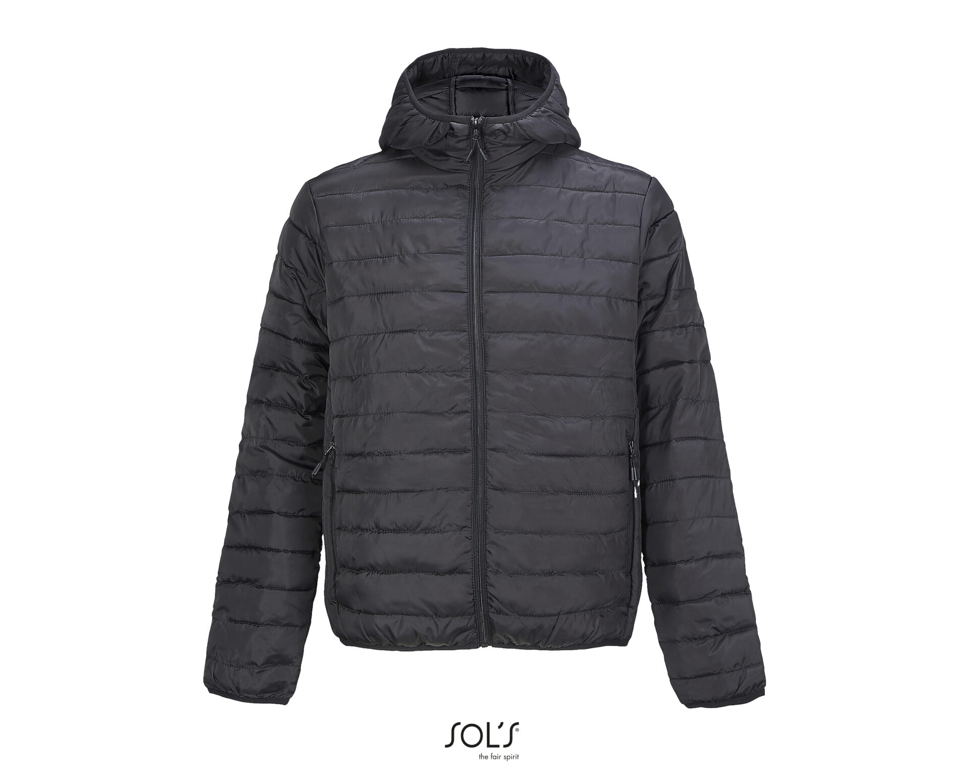 Front fastening and side pockets with tone-on-tone nylon zip