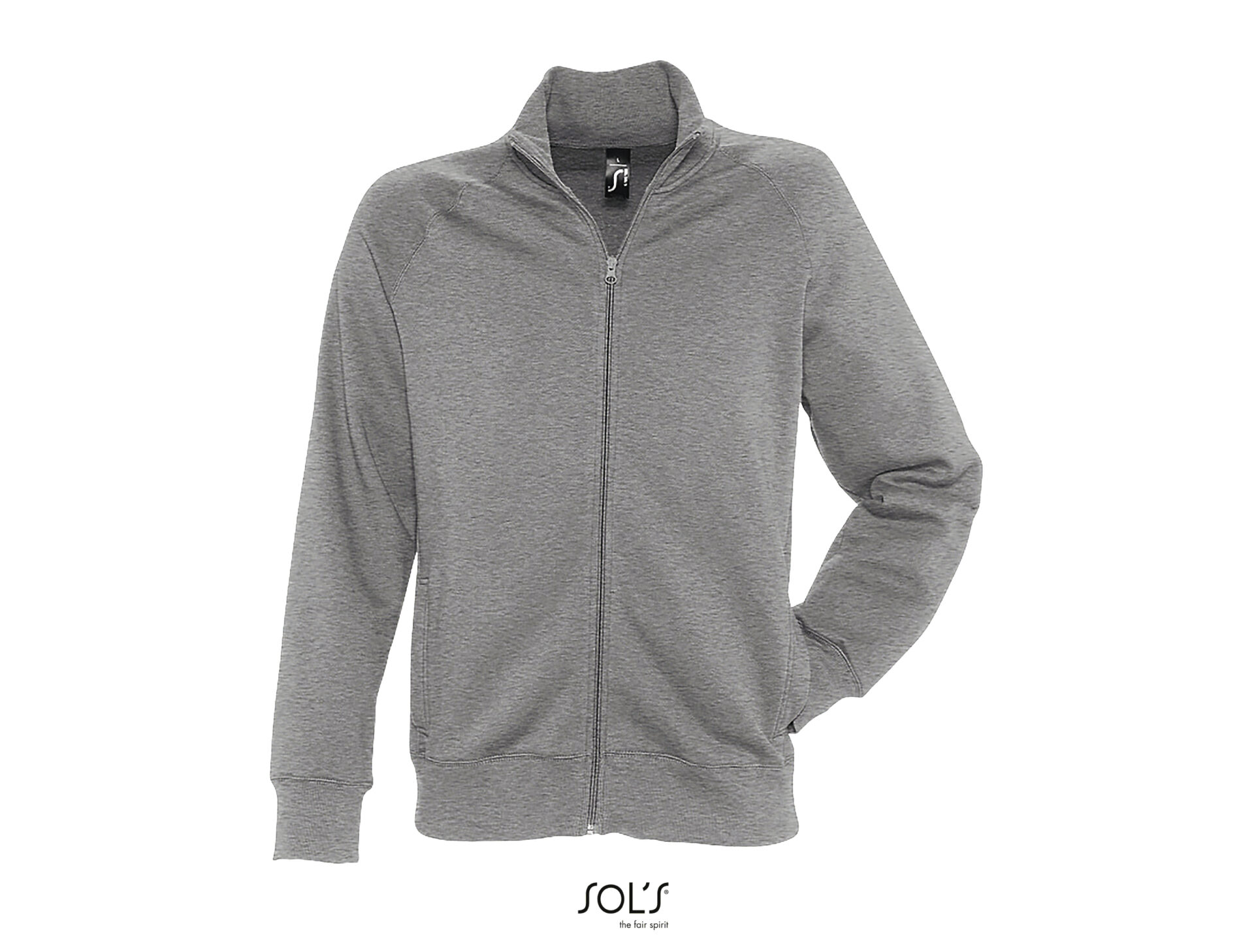 2×2 elastane rib collar, hem and cuffs High collar Raglan sleeves 2 side pockets Cut and sewn